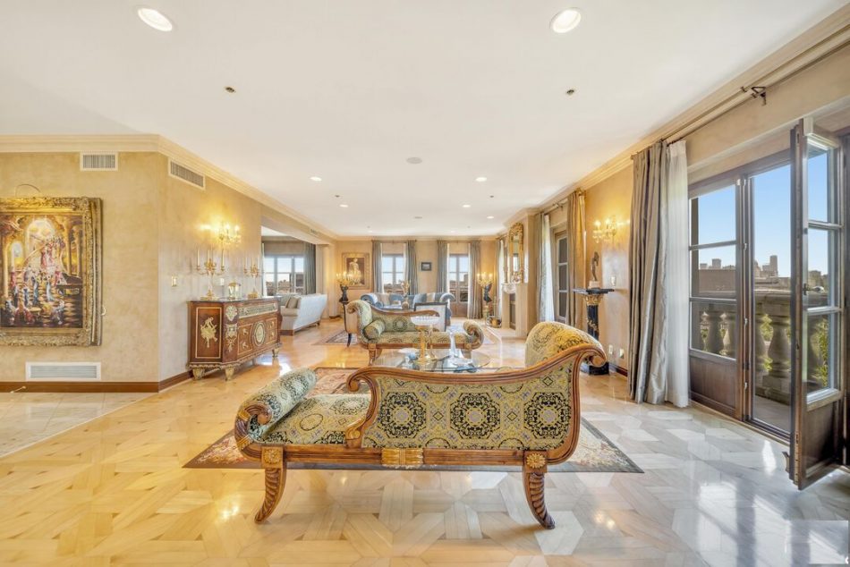 This one-of-a-kind luxurious Beverly Hills Penthouse spans more than 5,300 square feet and showcases panoramic views of the entire city of Beverly Hills to Downtown Los Angeles. Located on the top floor of the Le Faubourg, amenities include: valet, 24-hour doormen, concierge, security guards, pool/spa and gym. The interior of the unit features six bedrooms, seven-and-a-half baths, four fireplaces, a chef’s kitchen, three massive pyramid-shaped skylights that illuminate the interior, and a 700+ square foot private roof deck!